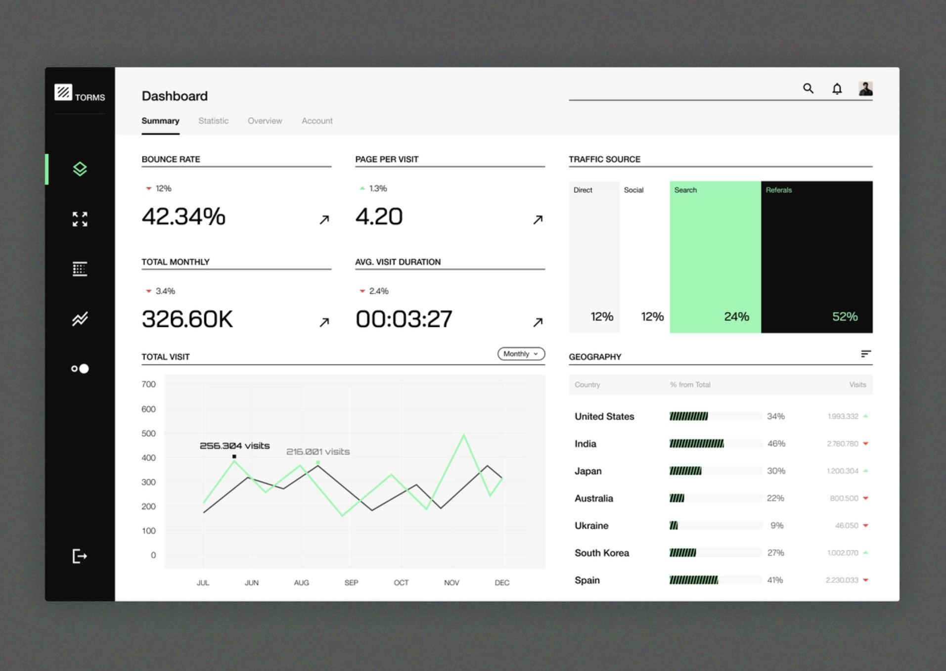 The type of infographics displayed in each widget is how the charts on the dashboard are intended to be displayed. With further input I also created a dark mode version of the dashboard, as the internal website also features a dark mode setting.